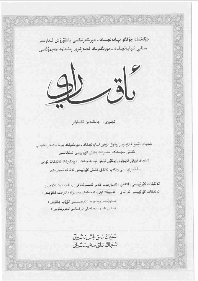 | كىتاب نامى | ئاقساراي – جامالىدىن ئاقساراي |