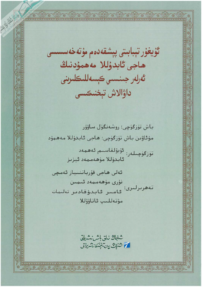 | كىتاب نامى | ھاجى ئابدۇللا مەھمۇدنىڭ ئەرلەر جىنسىي كېسەللىكلىرىنى داۋالاش تېخنىكىسى |